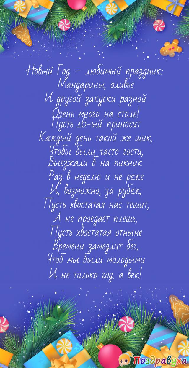 в канун НГ2023в стихахуниверсальныев прозекороткиемамепапебабушкедедушкесестрероднымлюбимымподругедрузьямпартнерам в прозеколлегамклиентамна английскомдетямстарый новый годна год петуха2021с годом быка20202022с годом тигра