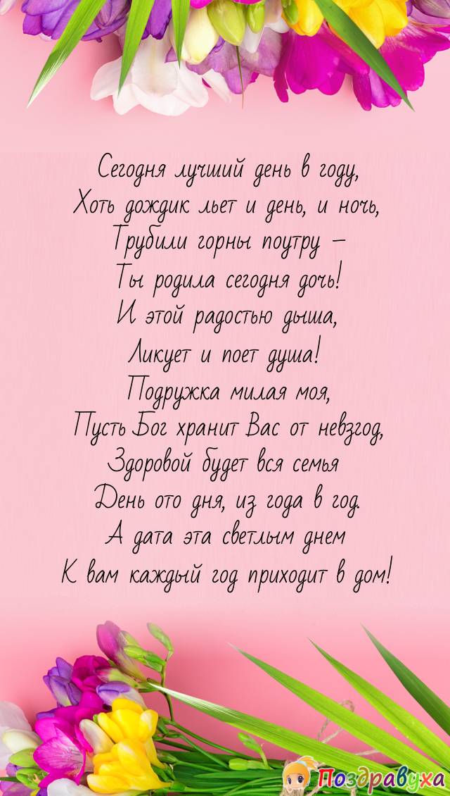 Подруге с рождением дочери